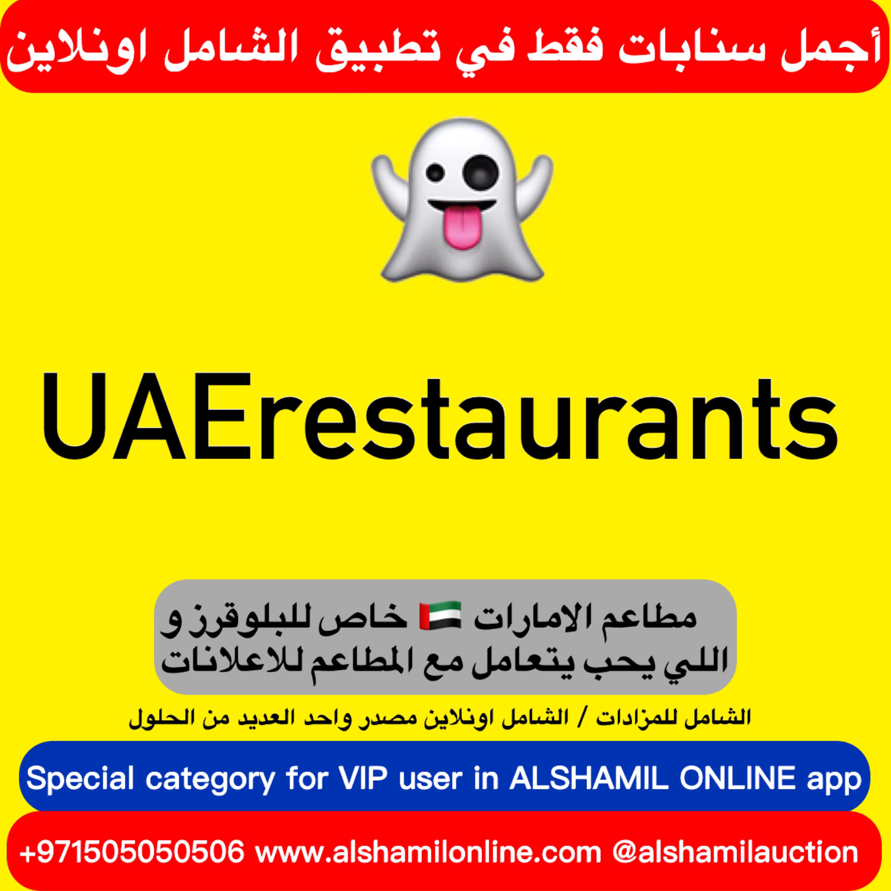 Description:This user it’s only for restaurants especially for the bloggers To do advertisement for restaurants all around UAE CALL +971505050506 للمزيد من العروضات المميزة حمل تطبيق الشامل اونلاين ALSHAMIL ONLINE مجاناً